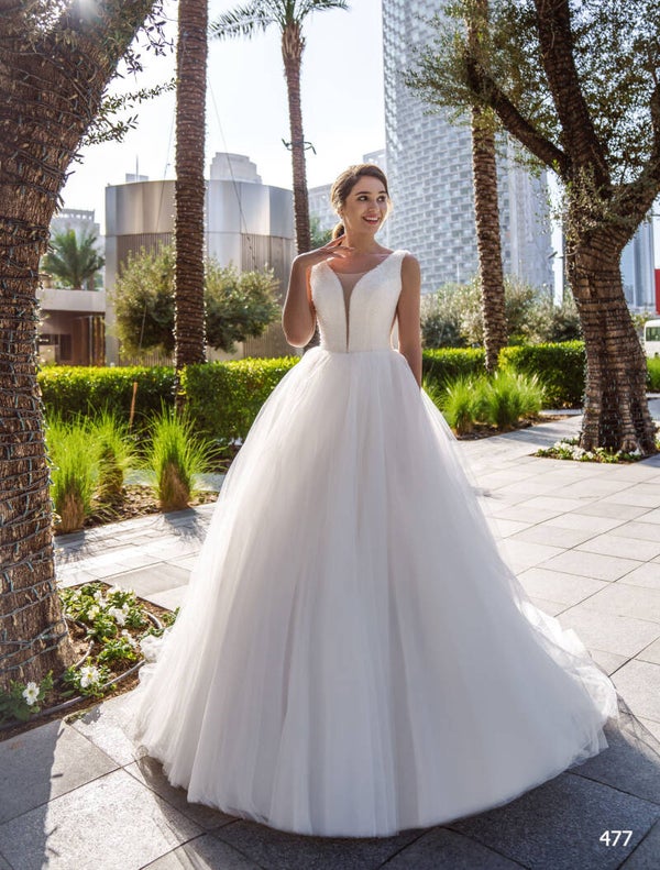 A stunning and elegant princess wedding dress with a classic silhouette that will make any bride feel like royalty. The top of the dress is made with a combination of luxurious satin and lightweight Euro tulle fabric, adorned with intricate crystal embroidery that sparkles beautifully in the light. The back of the dress features a delicate lace-up design that ensures a perfect fit, while the bottom of the dress is crafted with flowing layers of soft Euro tulle that create a romantic and graceful effect. With a 30 cm train that adds just the right amount of drama, this dress is the perfect choice for a bride who wants to feel like a true princess on her special day.