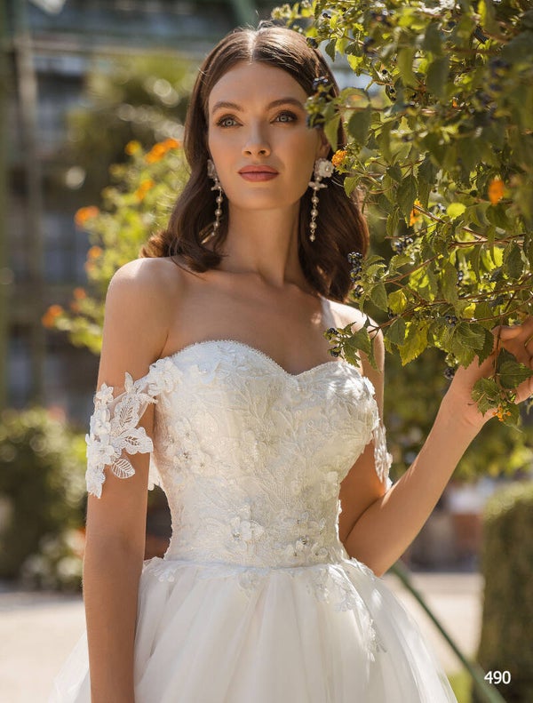 Decor: applications with 3D flowers embroidered with pearls and crystals