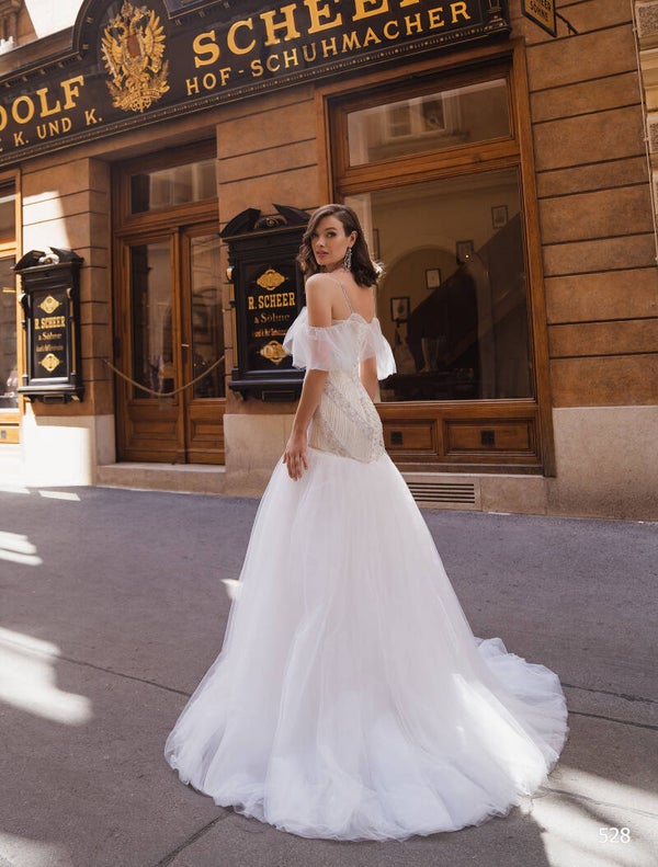 Sleeves/straps: cap sleeves, straps decorated with crystals