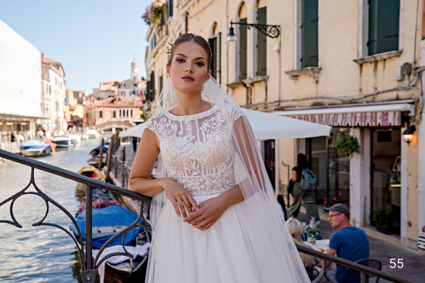 Absolutely mesmerizing wedding attire. The corset, fashioned from exquisite European tulle, is adorned with meticulously embroidered guipure, creating a truly enchanting masterpiece. The skirt gracefully drapes with a subtle slit on the left leg, adding a touch of allure, and is complemented by a 50 cm train that adds an extra layer of elegance. Prepare to captivate hearts in this incredible wedding dress.
